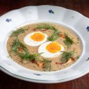Kulajda s vejcem nahniličko, restovanými liškami a čerstvým koprem