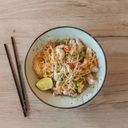 Thai noodle paradise, stir-fried rice noodles with chicken, egg, carrot, carrot, mung bean, served with peanuts and lime + drink of your choice