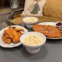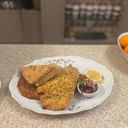 0CHICKEN SCHNITZEL WITH MASHED POTATOES, PICKLED CUCUMBER