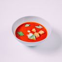 Tradiční italský rajčatový krém se stracciatellou, krutony a čerstvou bazalkou