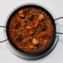 0Paella Valenciana s králičím a kuřecím masem, šneky a zeleninou