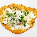 langoš, česnek, španělské chorizo, domácí dresink, ředkvičkové výhonky