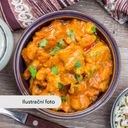 jemně kořeněné indické jídlo, připravené s kešu oříšky, mandlemi, smetanou a kořením