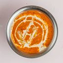 Kostky domácího sýra v omáčce z čerstvých rajčat, kešu oříšků a smetany.