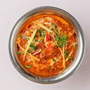 Kousky jehněčího masa vařené v cibuli a rajčatové omáčce, připravo- vané dle pravého kašmírského stylu.