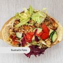 (tortilla plněná masem navíc, se salátem, omáčkou a sýrem)