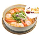 Vývar, krevety, rýžové nudle, rajče, jarní cibule, fazolové klíčky a ledový salát