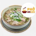 Vývar, dušené hovězí kosti, vonné kořicí, ploché rýžové nudle phở a hovězí