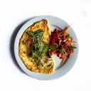 Italská omeleta se sušenými rajčaty, bazalkou, sýrem Gr. Padano a rukolou (VEG,1,3,6,7,12)