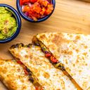 Velká pšeničná tortilla, 130g čedaru, černé fazole, zelenina a naše salsa dle výběru.