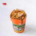 0Velký box - hranolky s hovězím masem.