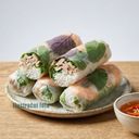 Čerstvé závitky s kurkumou, podávané s omáčkou, lehké a aromatické