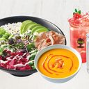 Zažeňte hlad i žízeň jediným kliknutím a ušetříte nejen čas, ale i peníze. Vyberte si výhodné menu s polévkou, salátem, poke nebo noky a nápoj k tomu.