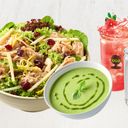 Menu obsahuje salát 265 g, polévku 160 ml a nápoj 0,33 l/ 0,4 l.