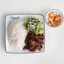 Užijte si autentický vietnamský pokrm, který nabízí grilované vepřové maso marinované v tradičních kořeních, doplněné o jemné rýžové nudle a čerstvé bylinky. Maso je pečlivě grilováno, aby získala bohatou chuť. Pokrm je podáván s sladkokyselou rybí zálivkou, která perfektně doplňuje hluboké a komplexní chutě masového pokrmu. (Papričky na fotce jsou pouze ilustrační, pokrm není pálivý, pokud si přejete chilli, označte ve volbě prosím.)