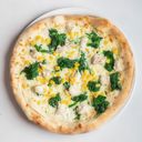 (smetanovy základ, kuřecí maso, kukuřice, parmazán, mozzarella)