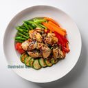 Extra velká wok porce se zeleninou, masem a asijskou omáčkou.