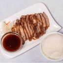 Marinovaná kachna pečená do křupava, podávaná s rýží