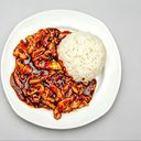 Křehké maso s pikantní omáčkou, podávané s voňavou rýží.
