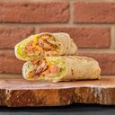 Tortila, salát, polníček, kukuřice, cheddar, slanina, omáčka s příchutí cheddaru, kuřecí strips