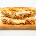 Naše dlouze uzená šťavnatá vepřová plec s trochou jalapeňos, zapečená v křupavých Texas toastech se spoustou roztopené holandské goudy.