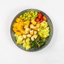 Smažené tofu, wakame, sushi rýže, originální Hawai omáčka, edemame, avokádo, smážená cibule, mango, sezam, okurka, řepa, japonská majonéza