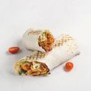 Chipotle BBQ zelí, ledový salát, rajče, mexická okurka, strouhaný čedar, kebab maso v tortile, průměr tortily před zabalením je 30 cm, po zabalení, je tortila samozřejmě menší