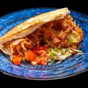 Halloumi v pita chlebu je skvělá kombinace chutí a textur. Měkký pita chléb je naplněný grilovaným, zlatavým a jemně křupavým sýrem halloumi, doplněným čerstvým salátem, plátky okurky, šťavnatými rajčaty, křupavým bílým i červeným zelím a jemně nasekanou cibulí, jež dohromady dodávají svěžest i křupavost. Celý sendvič je bohatě posypán nastrouhaným balkánským sýrem, jenž přidává jemně slaný, krémový nádech. K dochucení si můžete vybrat jednu z pěti omáček: svěží bylinkovou, krémovou česnekovou, exotickou kari, pikantní pro milovníky ostřejší chuti a jemně oříškový hummus.